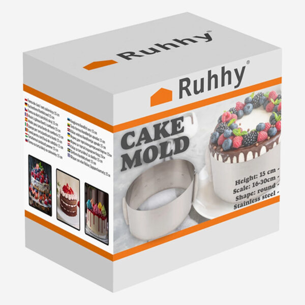 Verstellbare Edelstahl-Backform (15 cm hoch) für Kuchen, Torten & Desserts. Durchmesser 16–30 cm, hitzebeständig, spülmaschinenfest & vielseitig einsetzbar.
